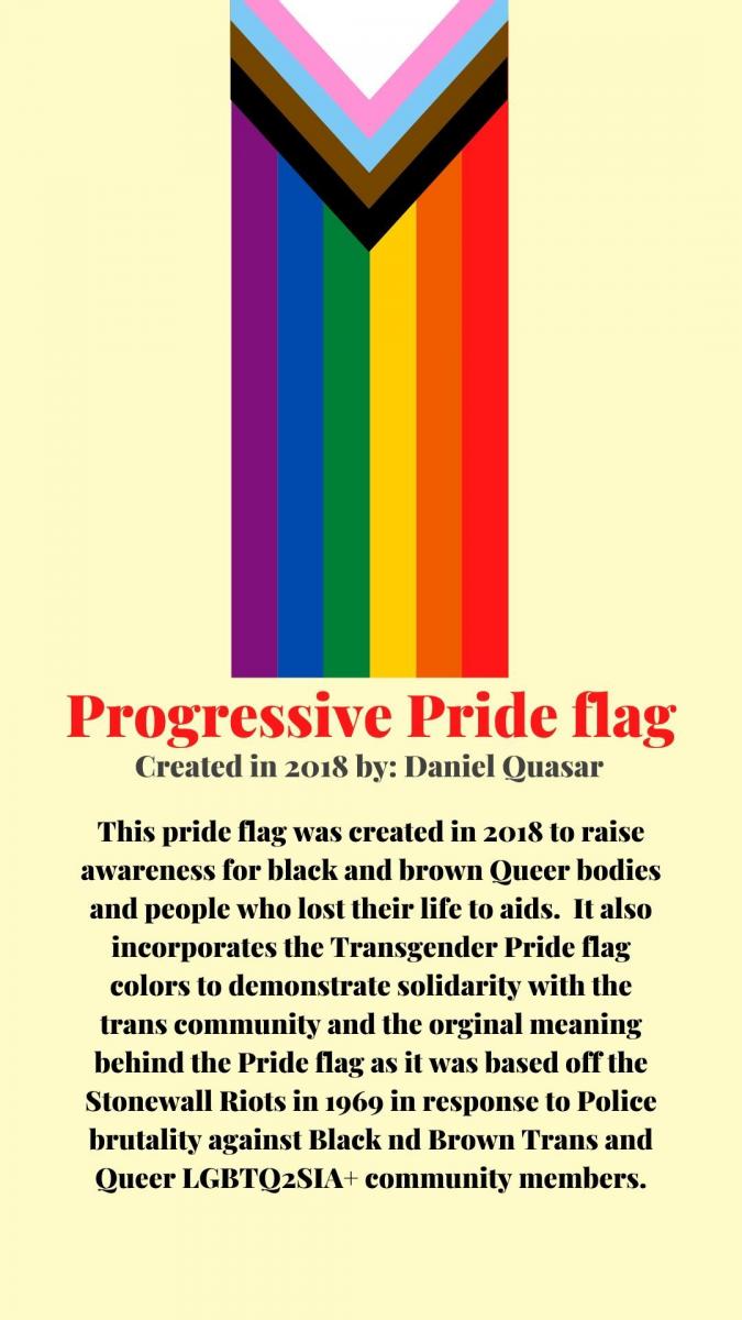 This pride flag was created in 2018 to raise awareness for black and brown Queer bodies